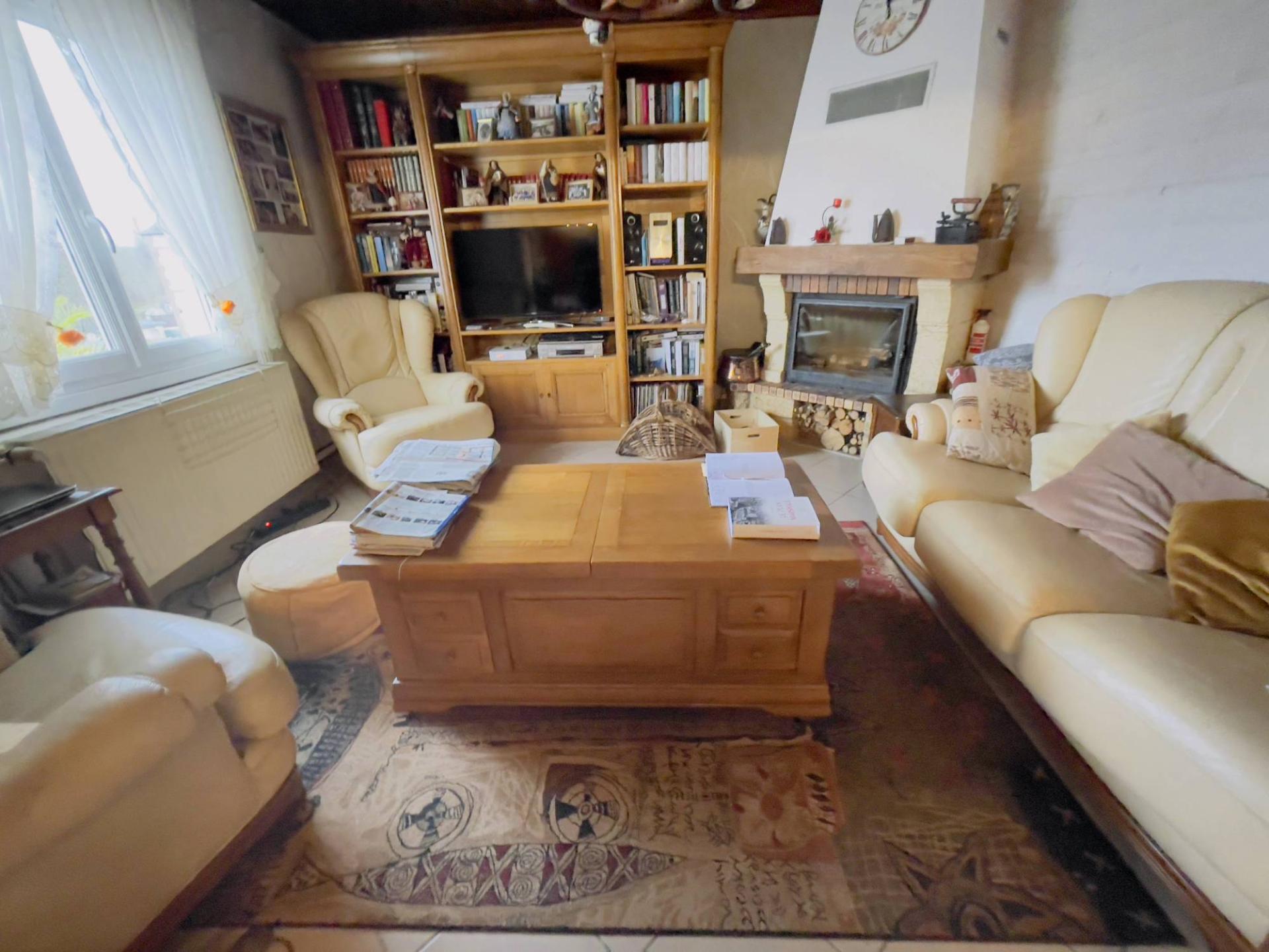 Un séjour salon avec cheminée insert,