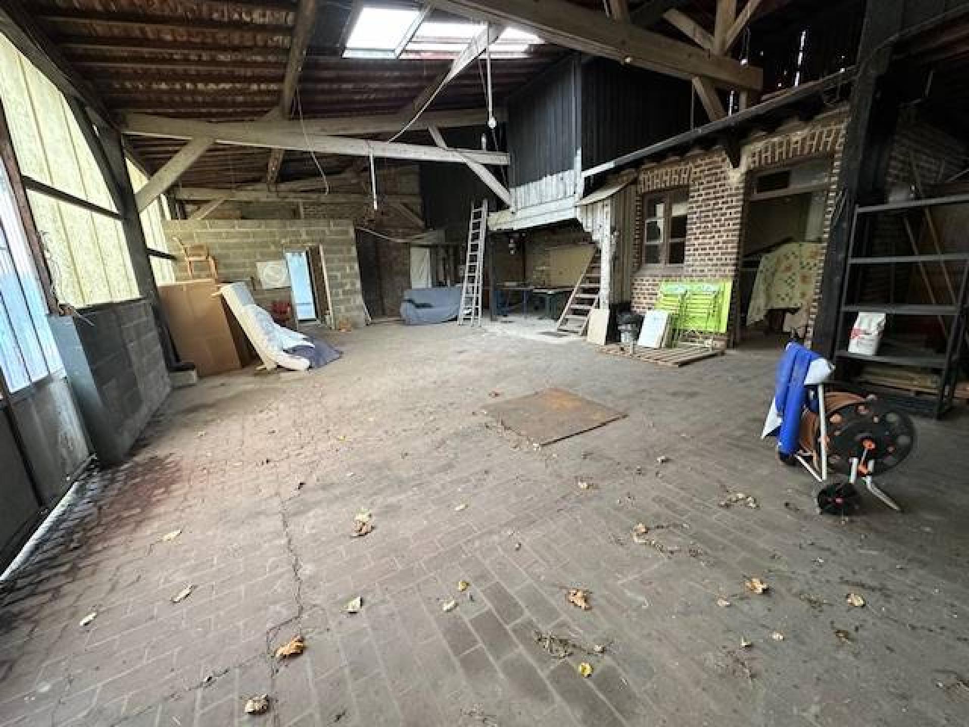 un grand bâtiment à usage de garage et d'atelier de 140 m² au sol + cave de 103m²