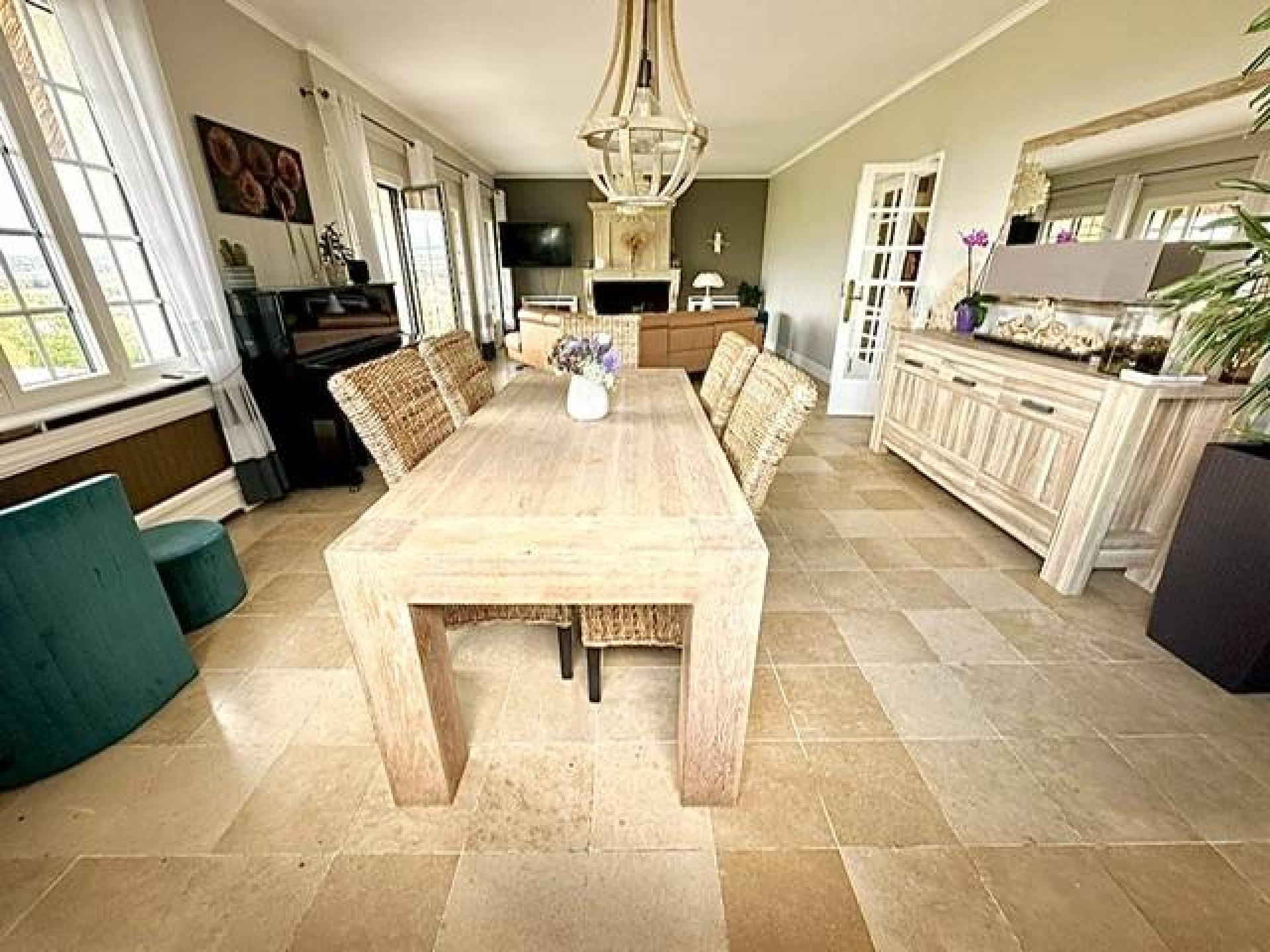 À l'intérieur de la maison, la vue reste omniprésente du séjour/salon spacieux de 47 m² avec sa sculpturale cheminée en pierre de taille, à la cuisine aménagée/équipée moderne de 23,5 m², en passant par la suite parentale de 14,75 m² avec dressing de 15 m² et sa spacieuse salle de bains équipée d'une baignoire balnéo et d'une douche à l'italienne, chaque espace vous offre une vue imprenable sur l'environnement verdoyant.