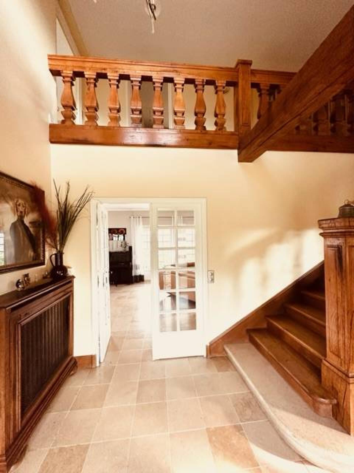L'étage est accessible par un escalier majestueux menant à une mezzanine avec son espace bureau, trois belles chambres de 13 à 18 m², dont deux avec salle de douche et un dressing ou bureau.