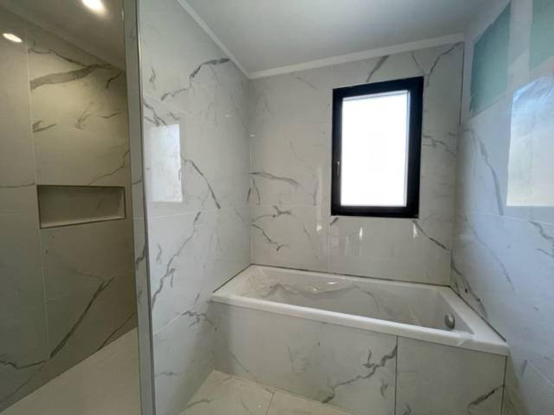 Une belle salle de bain avec douche et baignoire