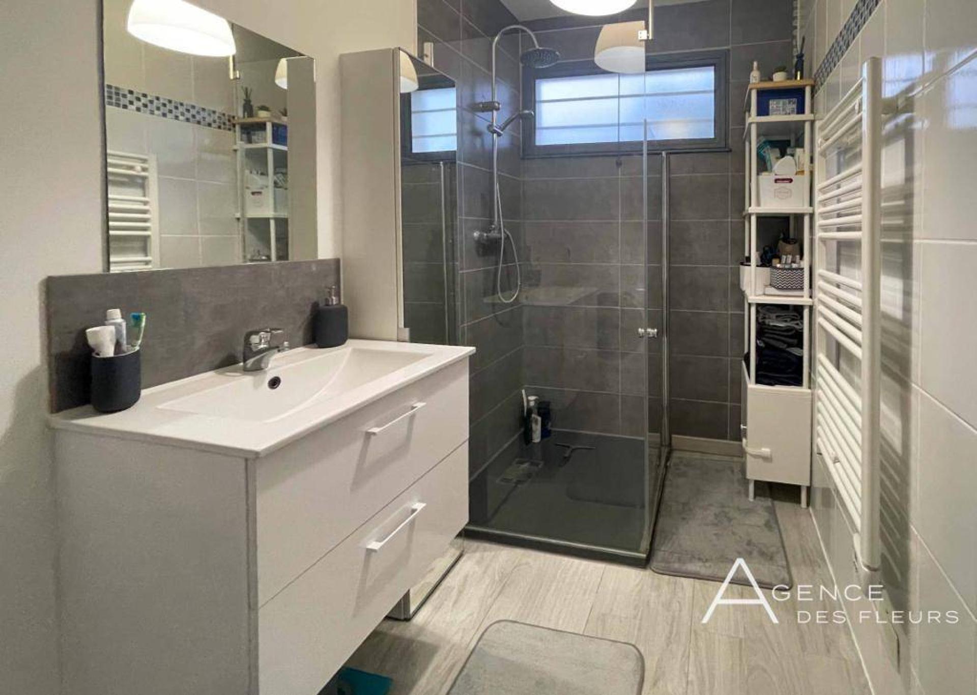 - Le séjour de 33 m² est ouvert sur une grande cuisine aménagée et équipée - 2 chambres de 12 m² et 9,20 m² - La salle d’eau de 4,6 m² est récente et décorée avec soin. - Un garage de 24 m² permet le stationnement d’un véhicule.