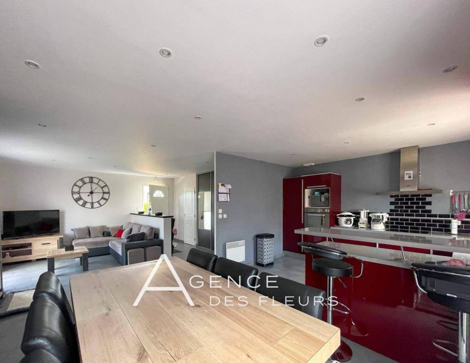 Pavillon de 100 m² composé par une entrée dégagée avec vestiaire, une cuisine fonctionnelle et équipée, pour profiter de chaque instant en famille ou entre amis, avec son ouverture sur le séjour/salon de 36 m² lumineux et chauffé par un insert bois.