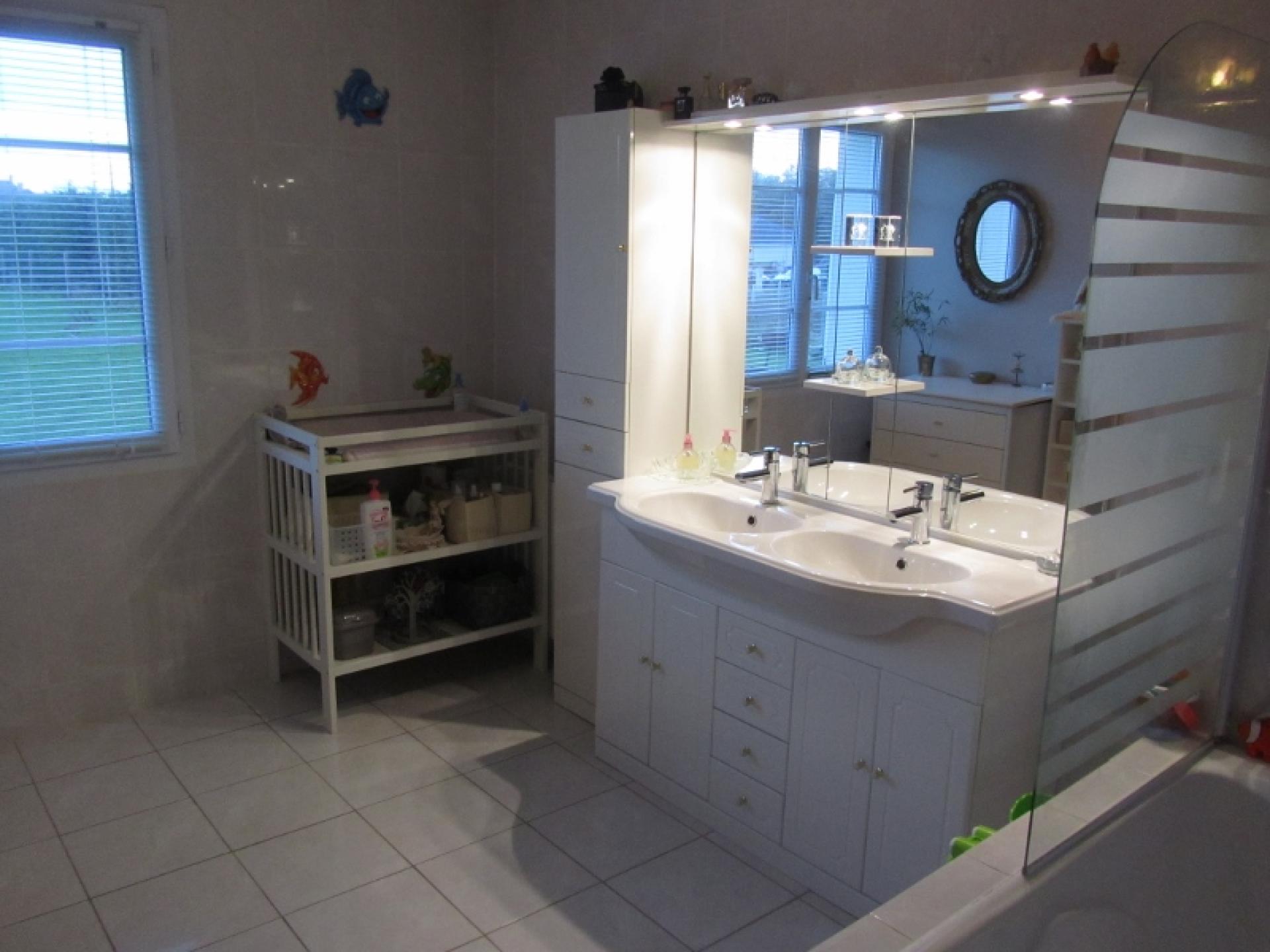 Proche de l'autoroute A28, sur l'axe Bourgtheroulde/Brionne, ce très beau pavillon récent de 2009, sous garantie décennale, sur un magnifique terrain de 2000 m² env vous offre :